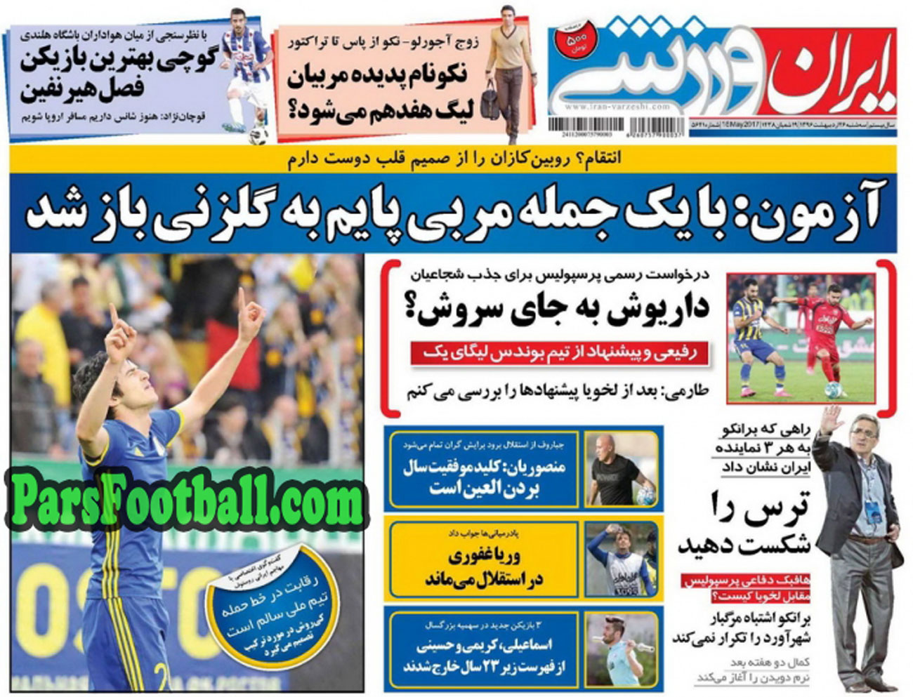 روزنامه ایران ورزشی ، سهشنبه ۲۶ اردیبهشت ؛ داریوش به جای سروش ؟!