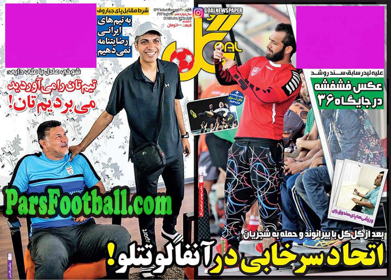 روزنامه گل ، شنبه ۳۰ اردیبهشت ؛ علیه لیدر سابق پرسپولیس سند رو شد