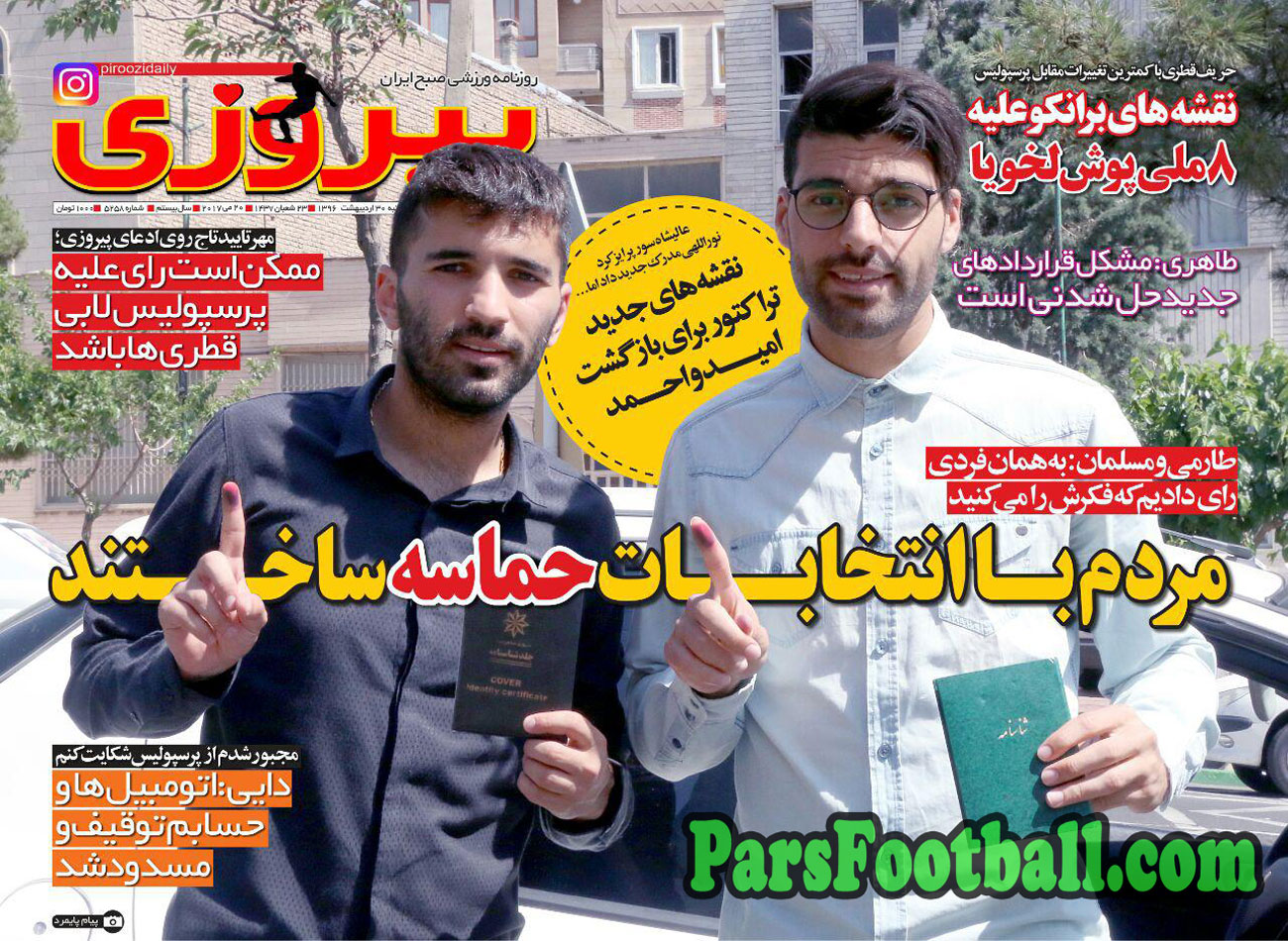 روزنامه پیروزی ، شنبه ۳۰ اردیبهشت ؛ نقشه های برانکو علیه ۸ ملی پوش لخویا