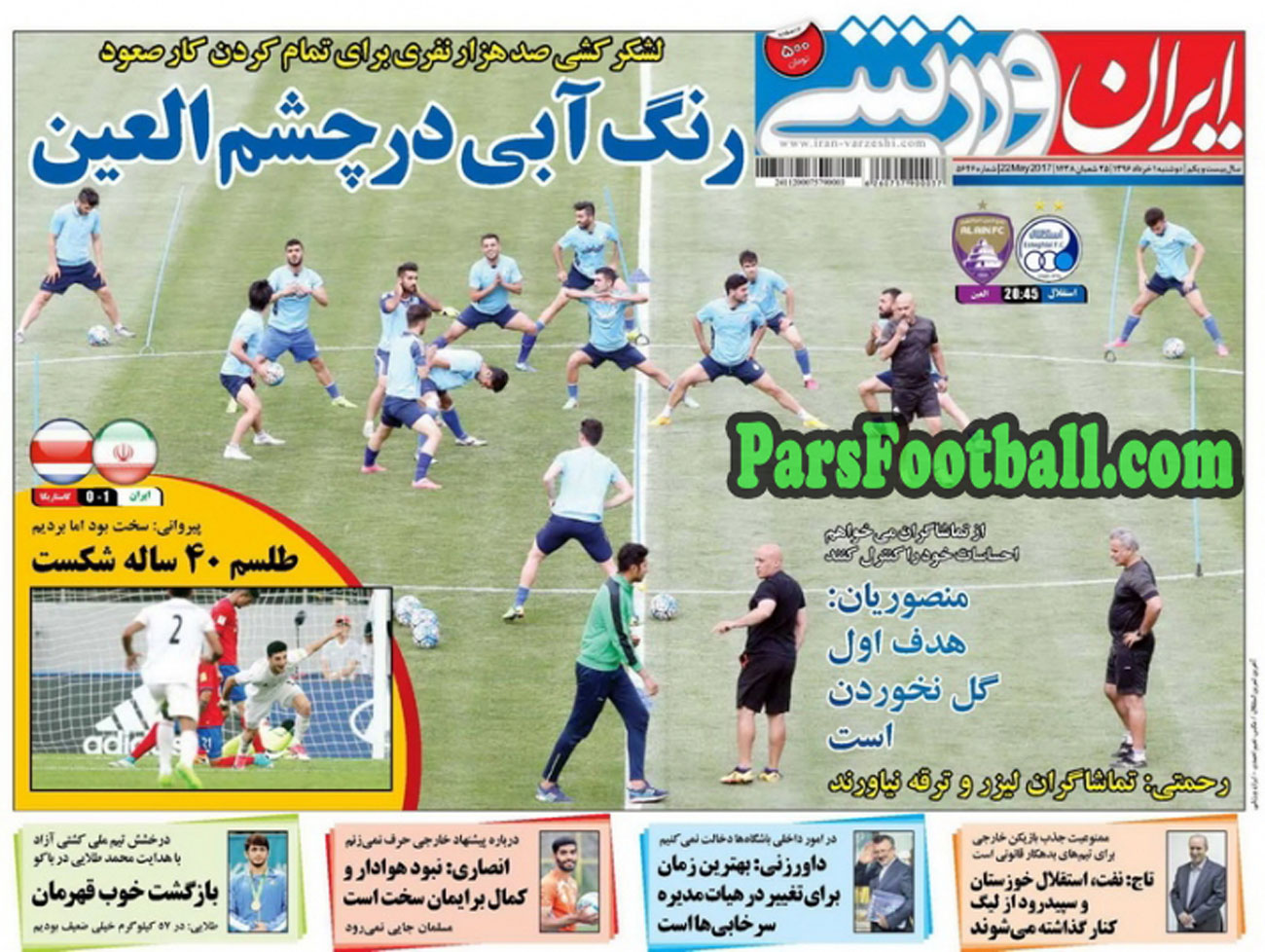 روزنامه ایران ورزشی ، دوشنبه ۱ خرداد ؛ رنگ آبی در چشم العین