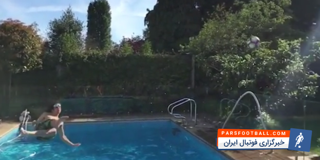 داوید لوییز، ستاره برزیلی چلسی در استخر خانه خود به زیبایی موفق شد هنر برزیلی خود را به نمایش بگذارد.
