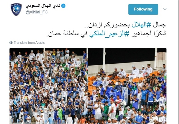باشگاه الهلال عربستان و تشکر از هوادارن عمانی برای حمایت مقابل استقلال خوزستان