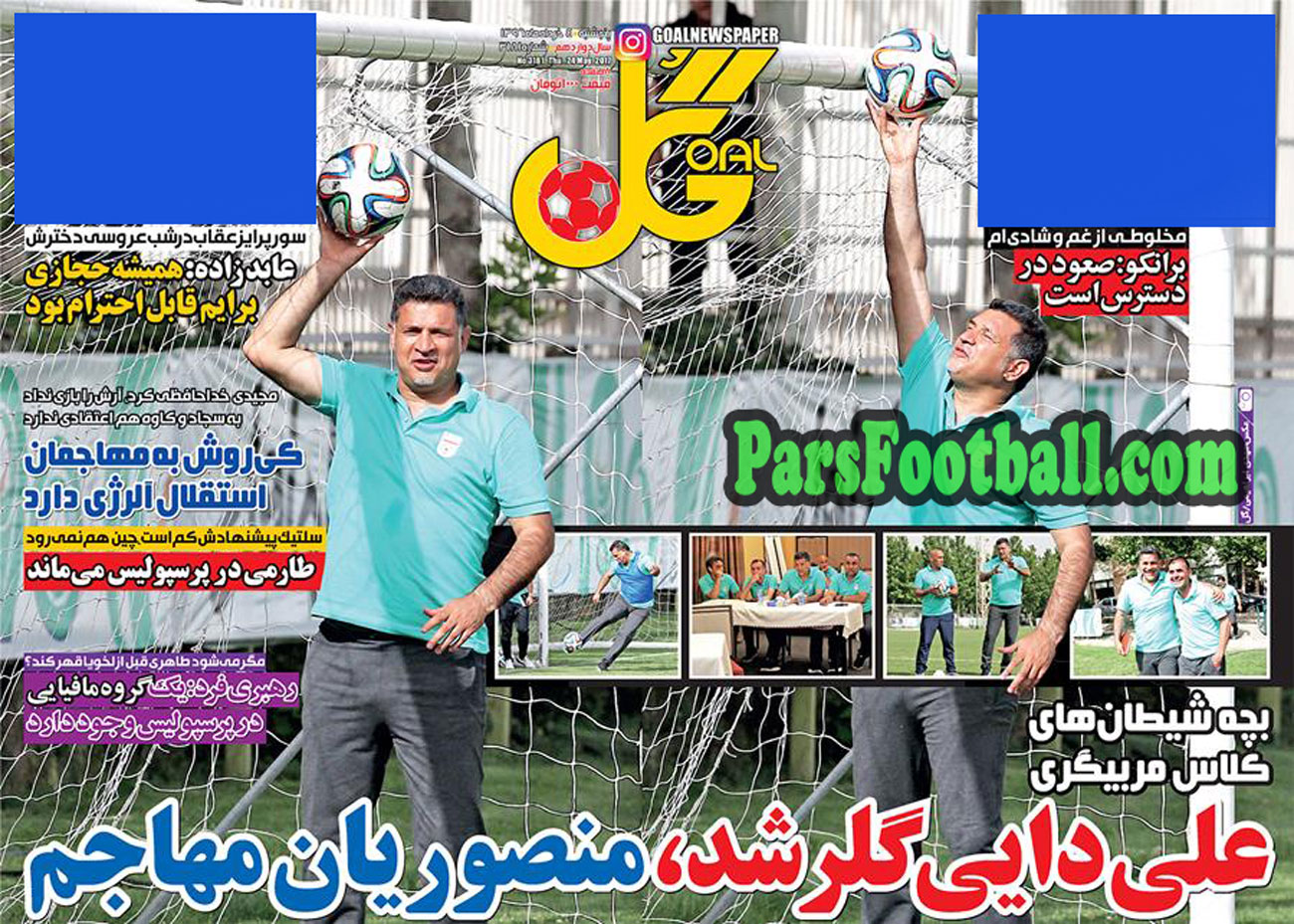 روزنامه گل ، پنجشنبه ۴ خرداد ؛ علی دایی گلر شد ، منصوریان مهاجم