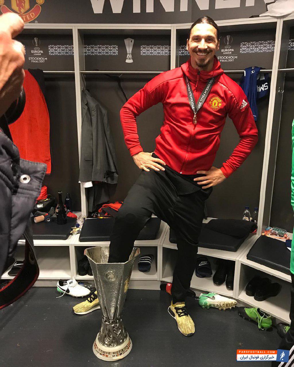 زلاتان فوق ستاره سوئدی یونایتد به علت مصدومیت تا پایان ۲۰۱۷ نمیتواند در میادین ظاهر شود. او شب گذشته با عصبا و لنگ لنگان، تیمش را در جشن قهرمانی همراهی کرد و پس از بازی و در رختکن، با ژستی عجیب با جام قهرمانی عکس گرفت.: