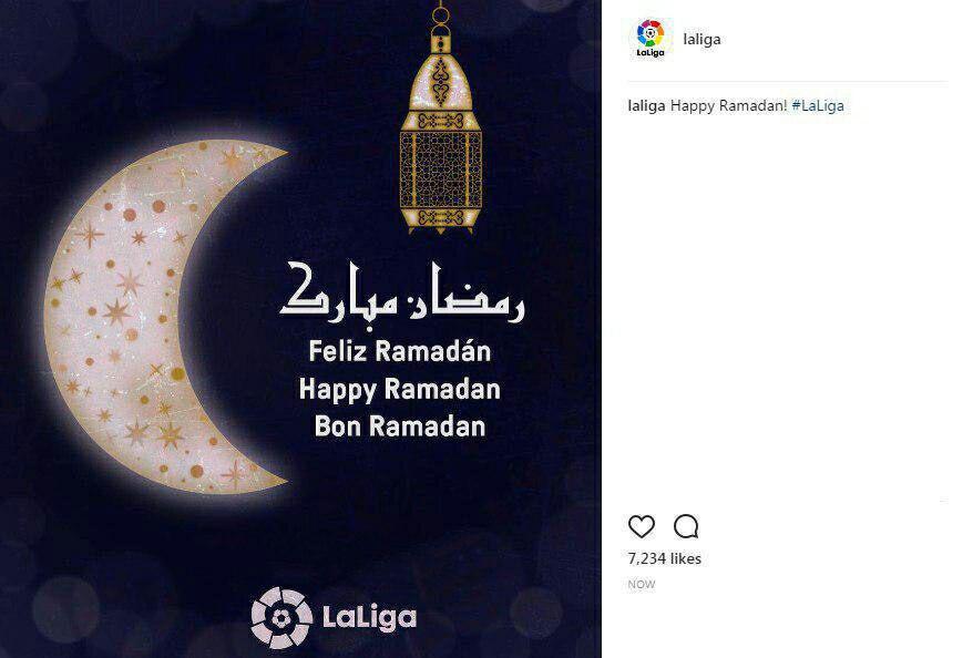 اینستاگرافی؛ سازمان لیگ اسپانیا شروع ماه مبارک رمضان را تبریک گفت