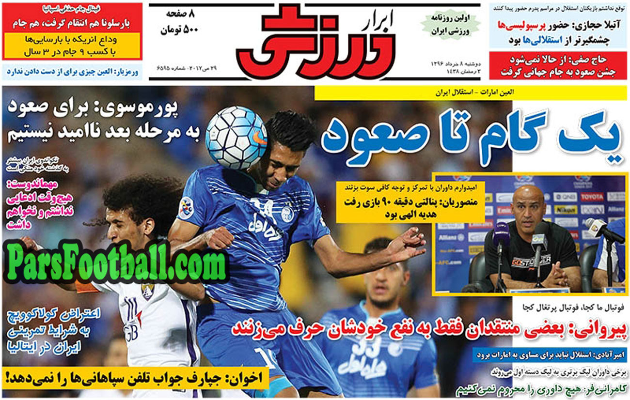 روزنامه ابرار ورزشی ، دوشنبه ۸ خرداد ؛ یک گام تا صعود