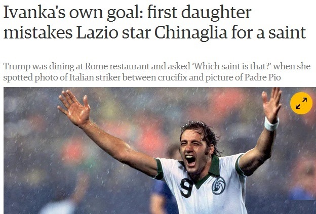 صاحب رستورانی در شهر رم فاش کرد زمانی که ایوانکا ترامپ به همراه همسرش جرد کوشنر به رستوران وی آمده وسفارش ناهار می دهند پس از آن ایوانکا دست هایش را به سوی عکس اسطوره لاتزیو و تاریخ فوتبال جهان و بازیکن سابق نیویورک کاسموس آمریکا نشانه رفت و با حالت عجیبی گفت: این قدیس ایتالیایی کیست؟