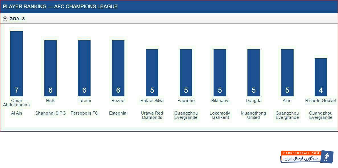 مهدی طارمی برای کسب عنوان آقای گلی لیگ قهرمانان آسیا سخت ترین کار ممکن را در پیش رو دارد. او باید عمر عبدالرحمان گلزن تیم العین که هم اکنون بهترین بازیکن آسیاست را پشت سر بگذارد. این بازیکن اماراتی هفت گله است.