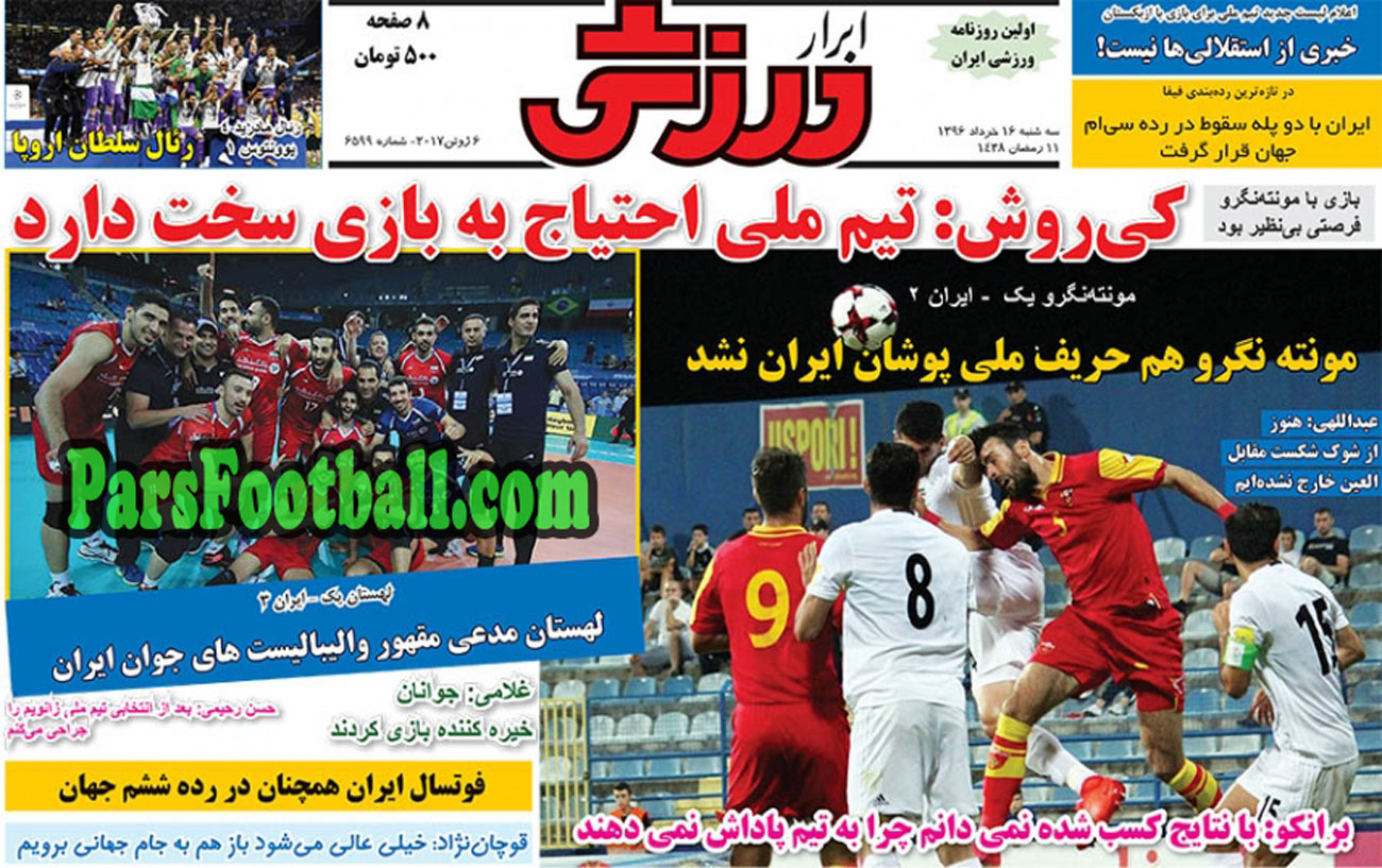 عناوین روزنامه ابرار ورزشی در روز سهشنبه ۱۶ خرداد به شرح زیر است :