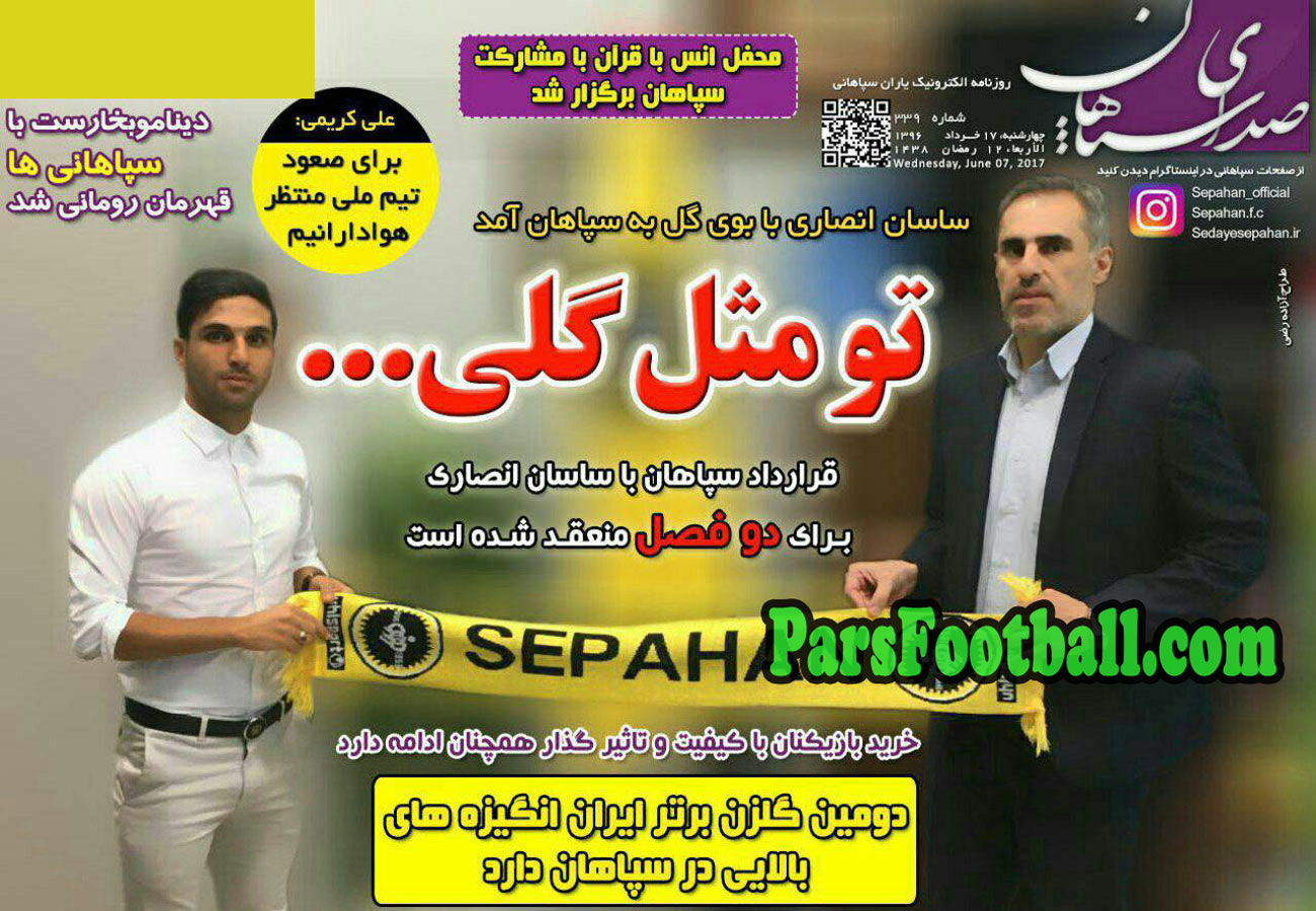 عناوین روزنامه صدای سپاهان در روز چهارشنبه ۱۷ خرداد به شرح زیر است :
