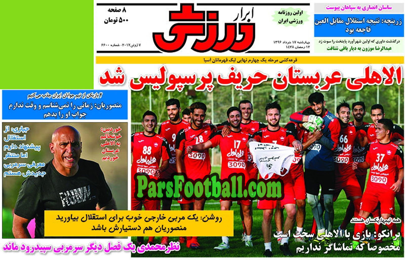 عناوین روزنامه ابرار ورزشی در روز چهارشنبه  ۱۷ خرداد به شرح زیر است :