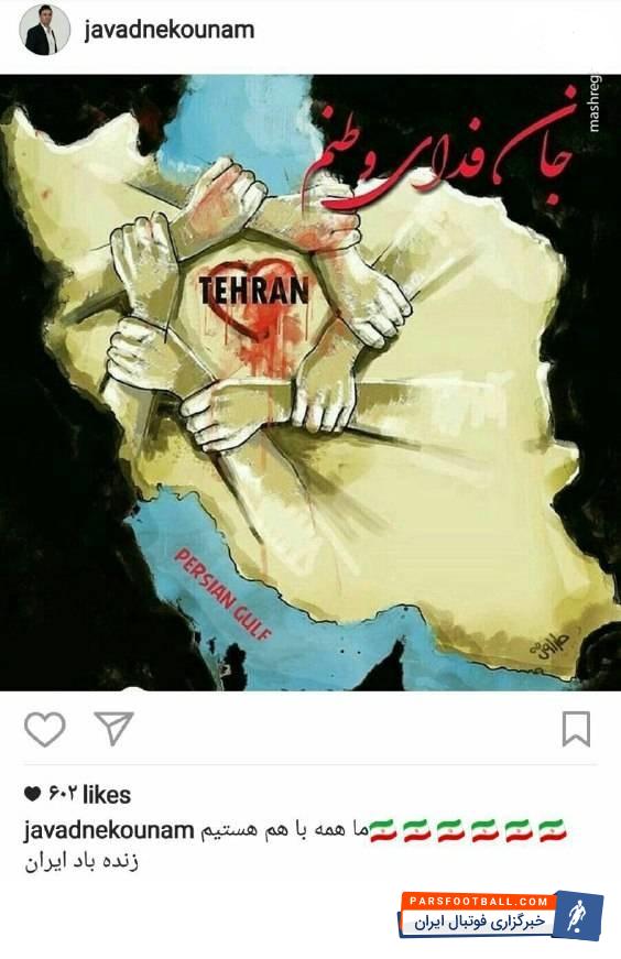 پست اینستاگرام جواد نکونام در مورد اتفاقات دیروز تهران