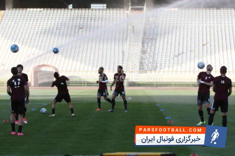 تصویری از فواره های آبی که در تمرین دیروز بازیکنان تیم ملی را خیس کرد