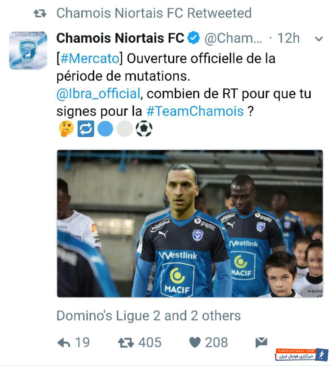 چامویز نیورتایس، تیمی از لیگ دو فرانسه که فصل قبل را در رتبه دهم به اتمام رساند، برای مهاجم سابق پاری سن ژرمن پیشنهادی فرستاده است. اکانت رسمی توییتر باشگاه که اینگونه میگوید!