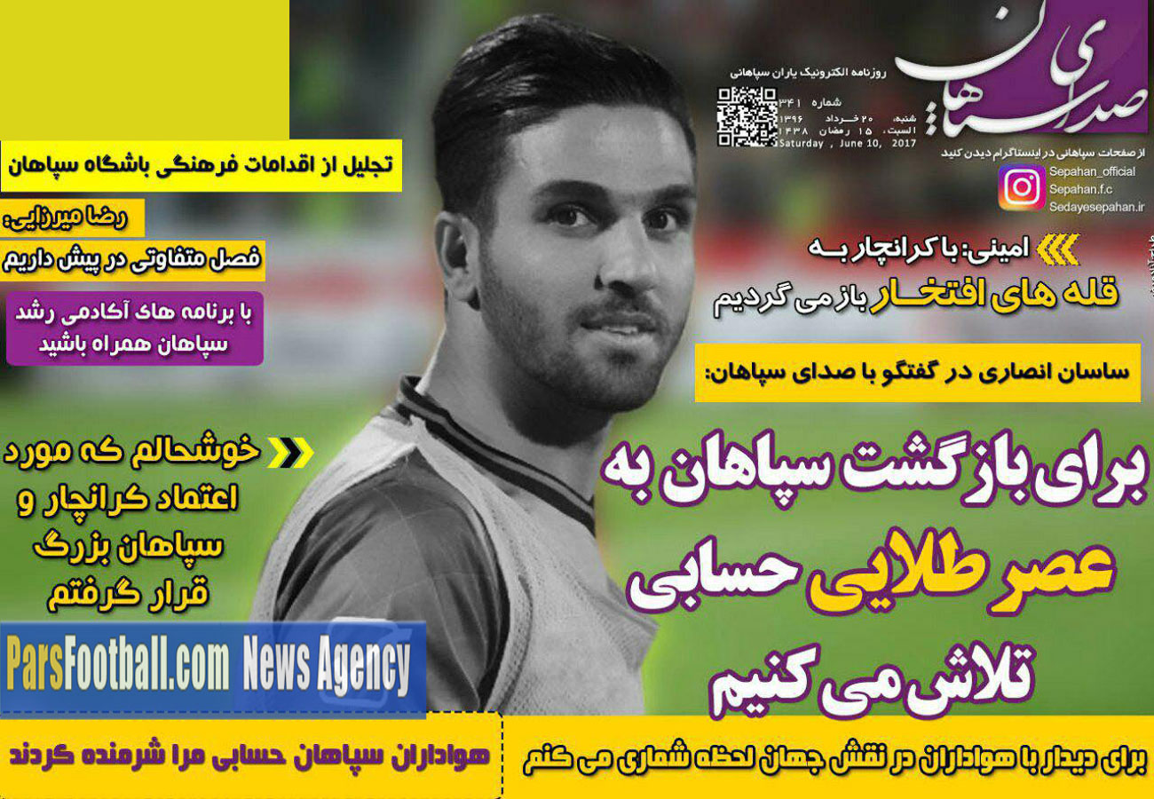 روزنامه صدای سپاهان ، شنبه ۲۰ خرداد ؛ برای دیدار با هواداران لحظه شماری می کنم