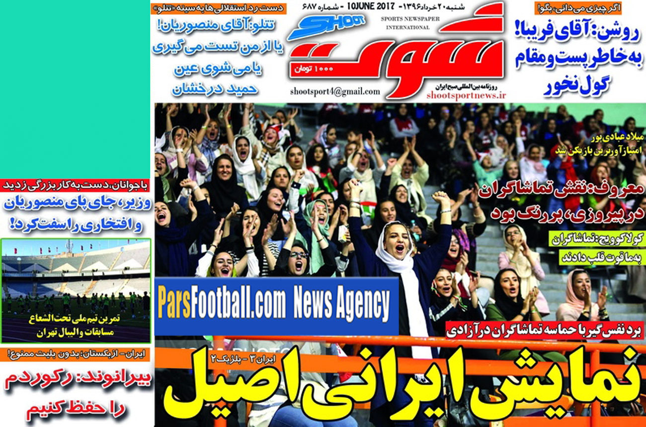 عناوین روزنامه شوت در روز شنبه ۲۰ خرداد به شرح زیر است :