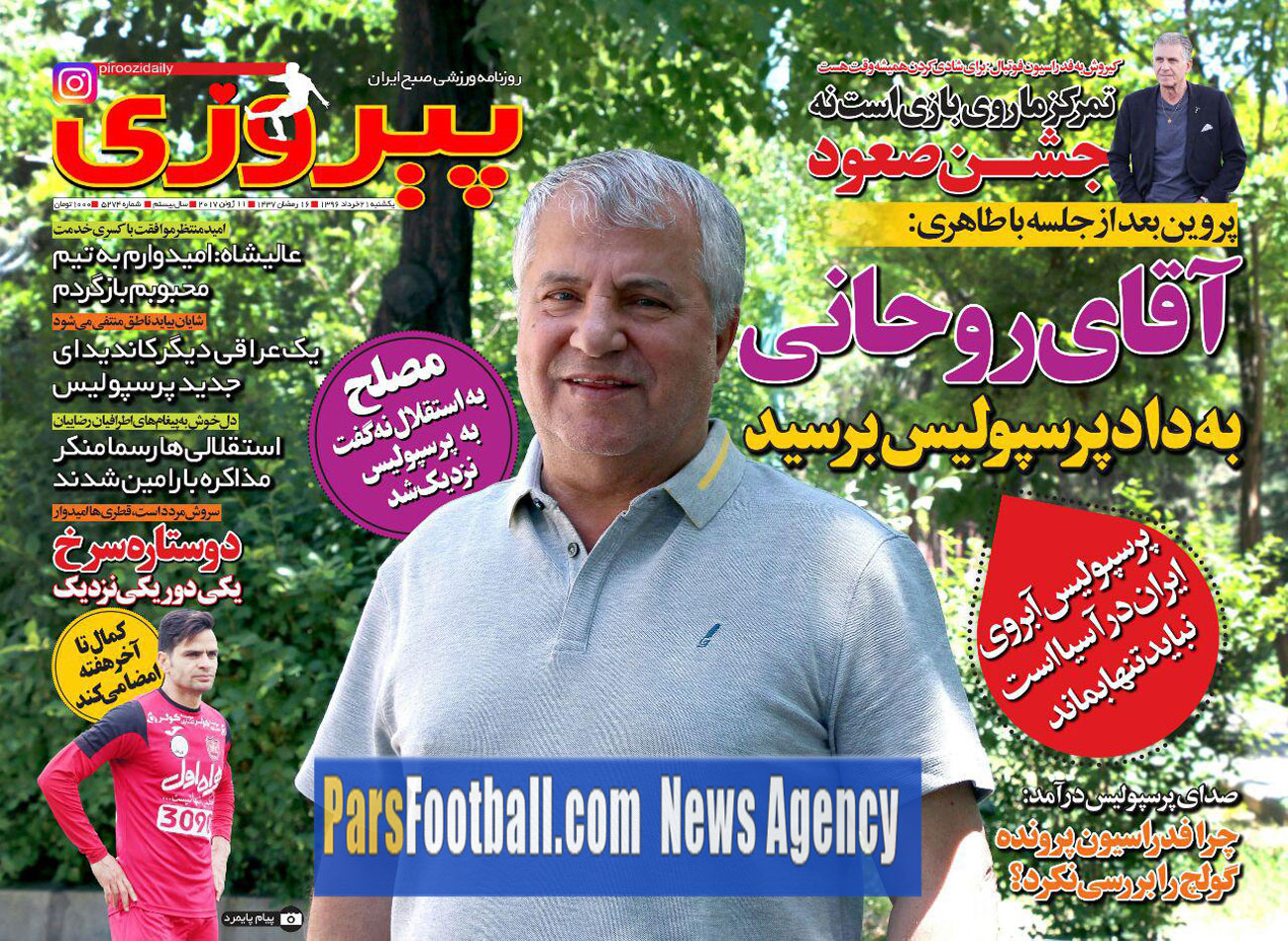 روزنامه پیروزی ، یکشنبه ۲۱ خرداد ؛ به داد پرسپولیس برسید !
