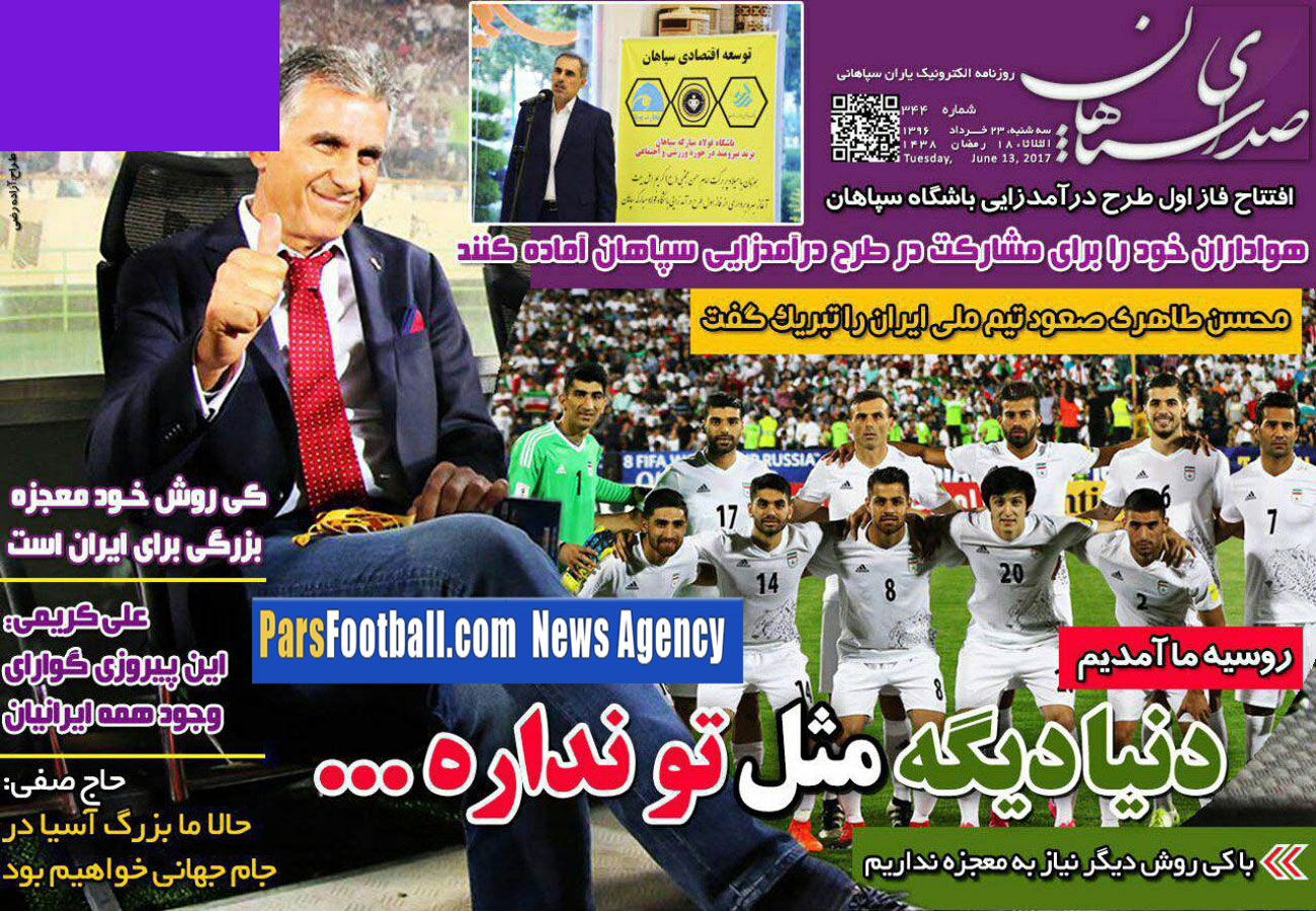 روزنامه صدای سپاهان ، سهشنبه ۲۳ خرداد ؛ دنیا دیگه مثل تو نداره !