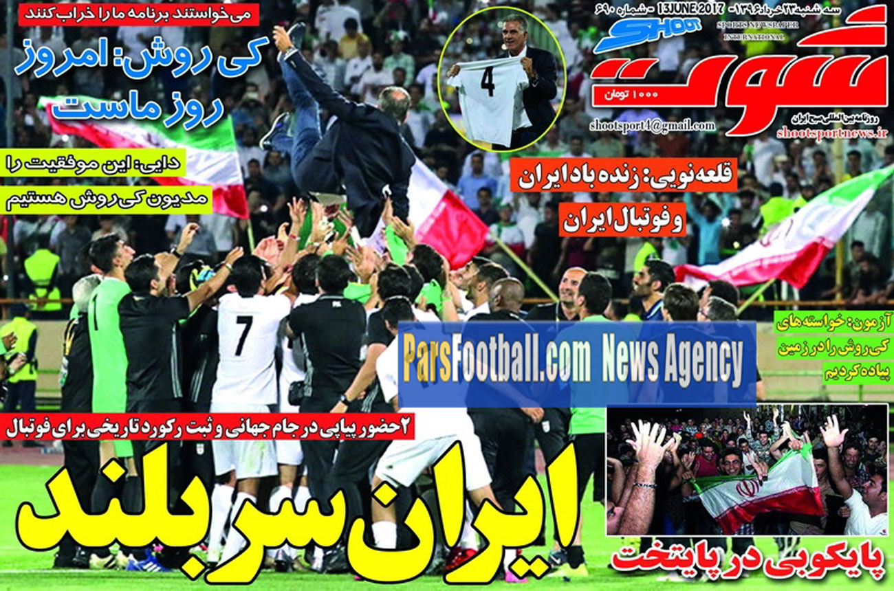 روزنامه شوت ، سهشنبه ۲۳ خرداد ؛ ایران سربلند