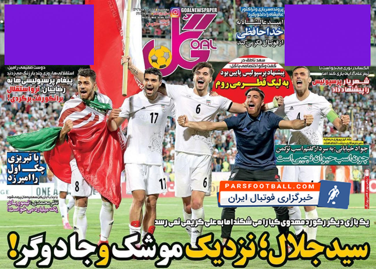 روزنامه گل ، چهارشنبه ۲۴ خرداد ؛ چک اول را امیر زد !