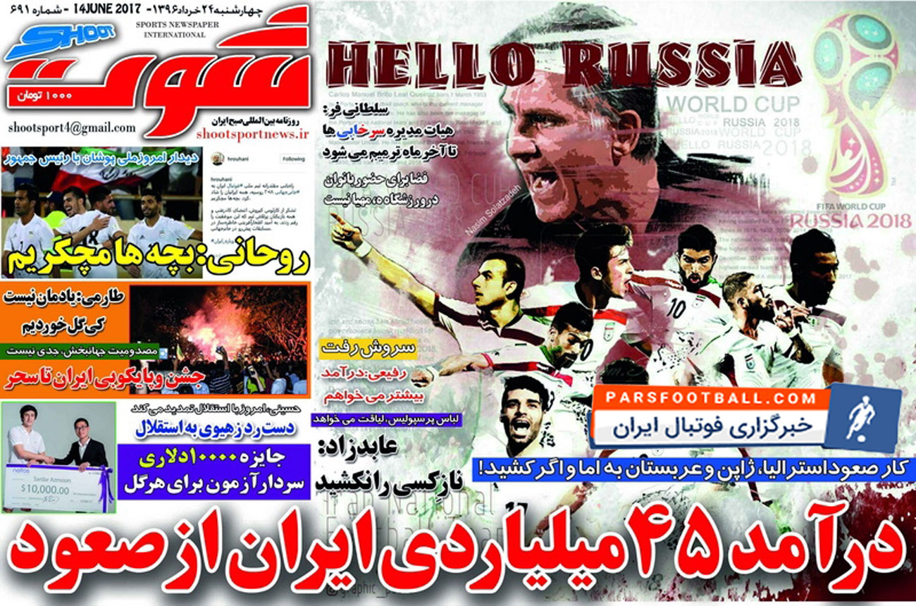 عناوین روزنامه شوت در روز چهارشنبه ۲۴ خرداد به شرح زیر است :