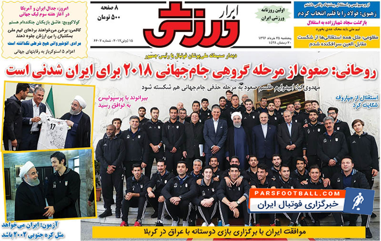 عناوین روزنامه ابرار ورزشی در روز پنجشنبه ۲۵ خرداد به شرح زیر است :