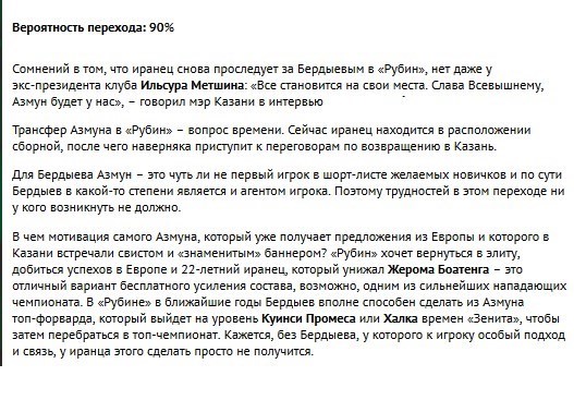 تردیدهایی درباره همراهی دوباره مهاجم ایرانی با قربان بردیف در تیم روبینکازان است اما ایزور متسشین، شهردار کازان و رئیس سابق باشگاه روبین مدتی قبل گفته بود که همه چیز به سر جای خود بازمیگردد. خدا را شکر دوباره سردار آزمون را خواهیم داشت.