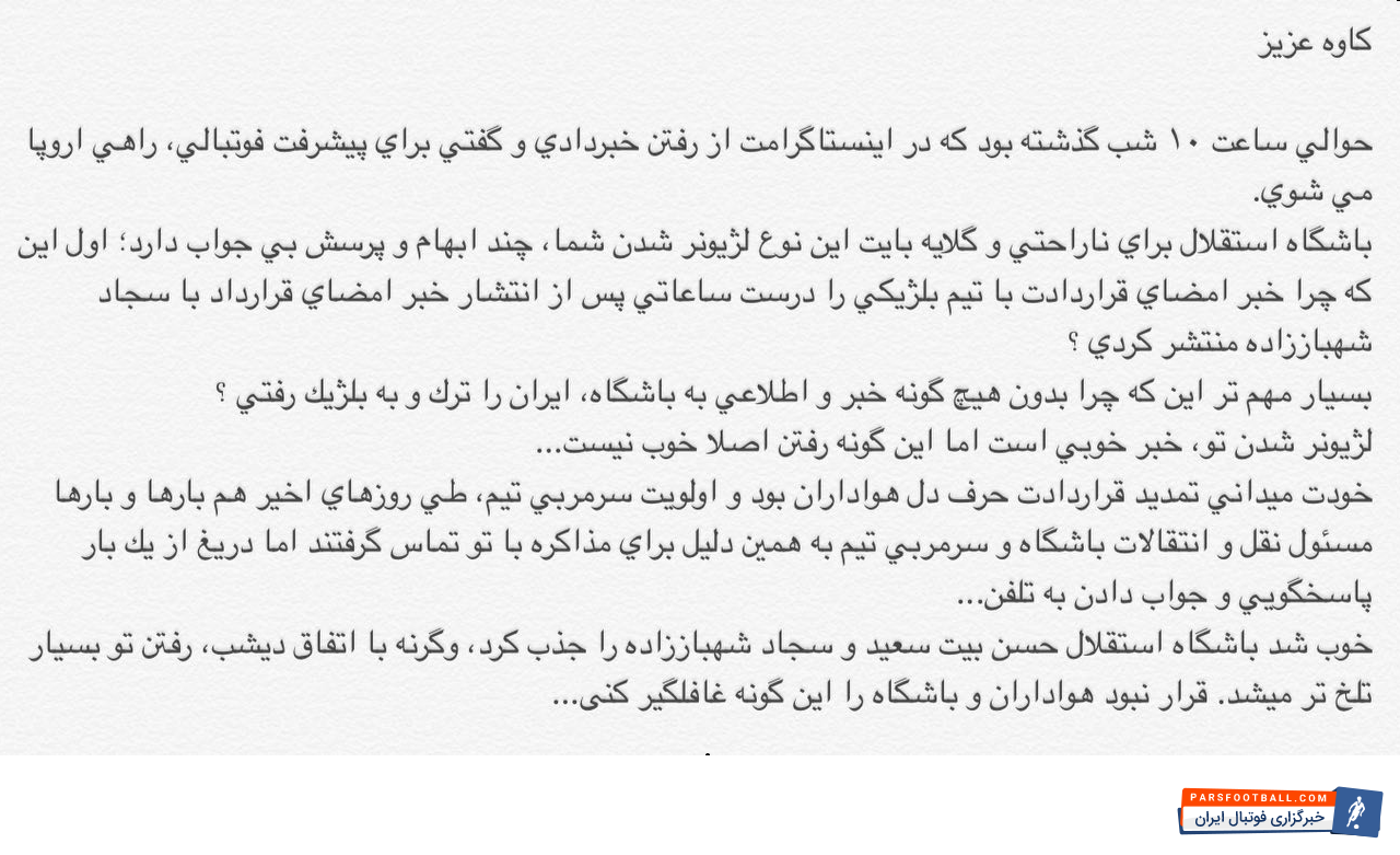 عکس ؛ گلایه شدید استقلالیها از کاوه رضایی!