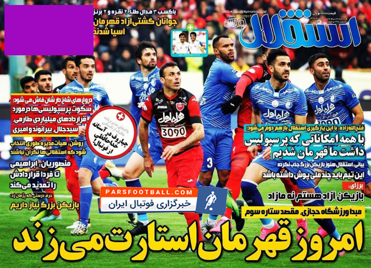 روزنامه استقلال جوان ، دوشنبه ۲۹ خرداد ؛ امروز قهرمان استارت می زند