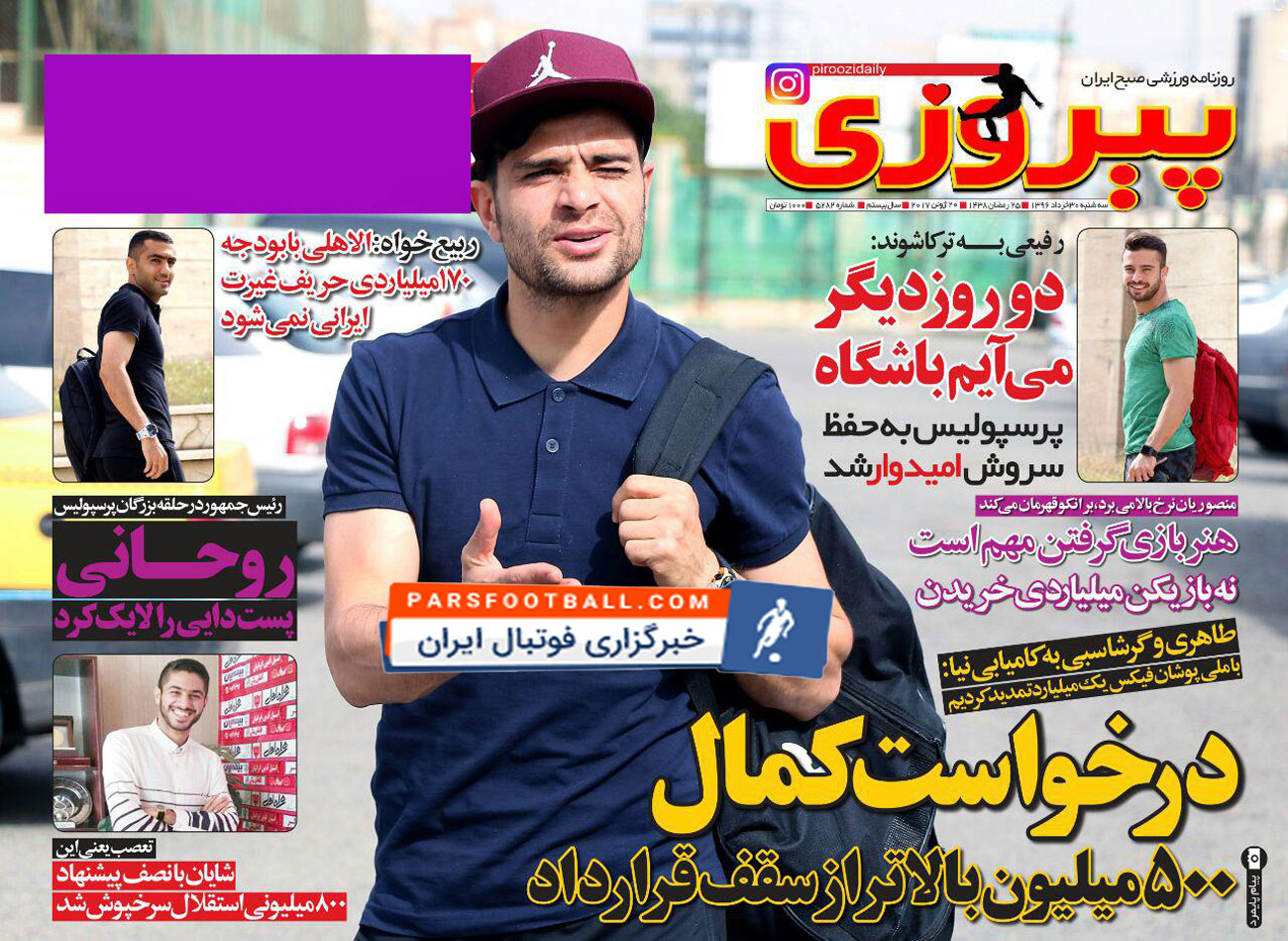 روزنامه پیروزی ، سهشنبه ۳۰ خرداد ؛ تعصب یعنی این !