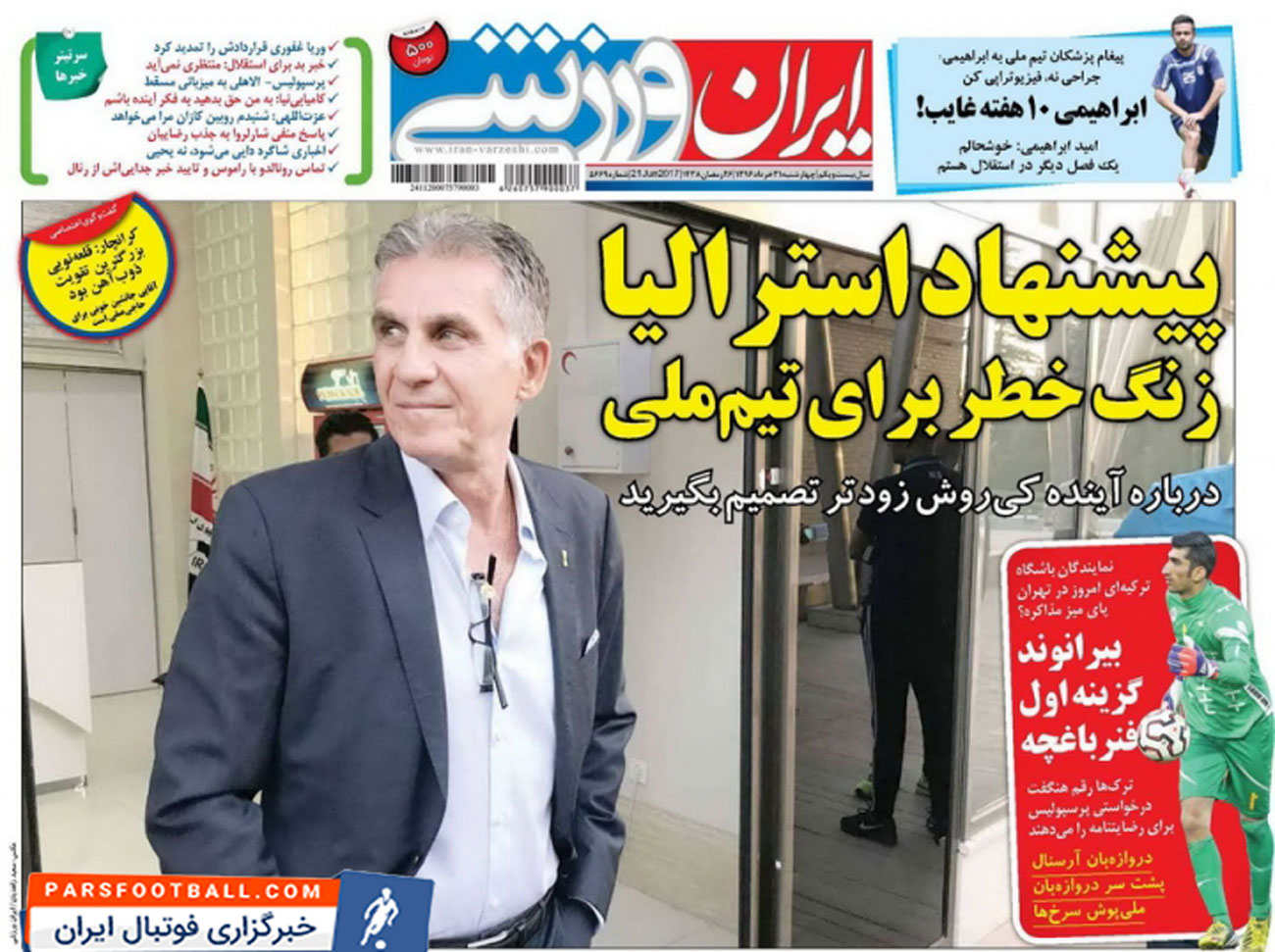 روزنامه ایران ورزشی ، چهارشنبه ۳۱ خرداد ؛ زنگ خطر برای تیم ملی
