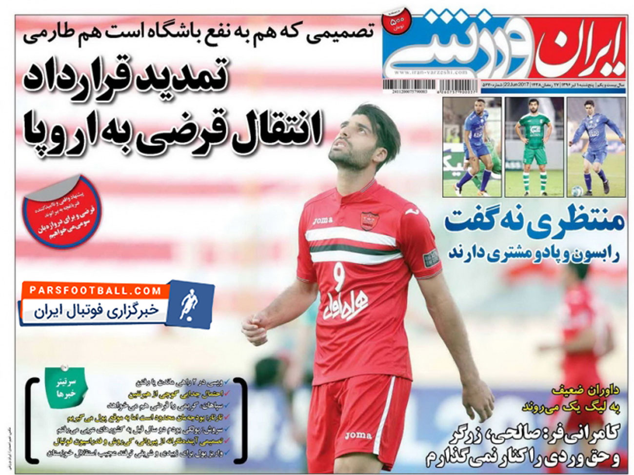 روزنامه ایران ورزشی ، پنجشنبه ۱ تیر ؛ انتقال قرضی آقای گل به اروپا