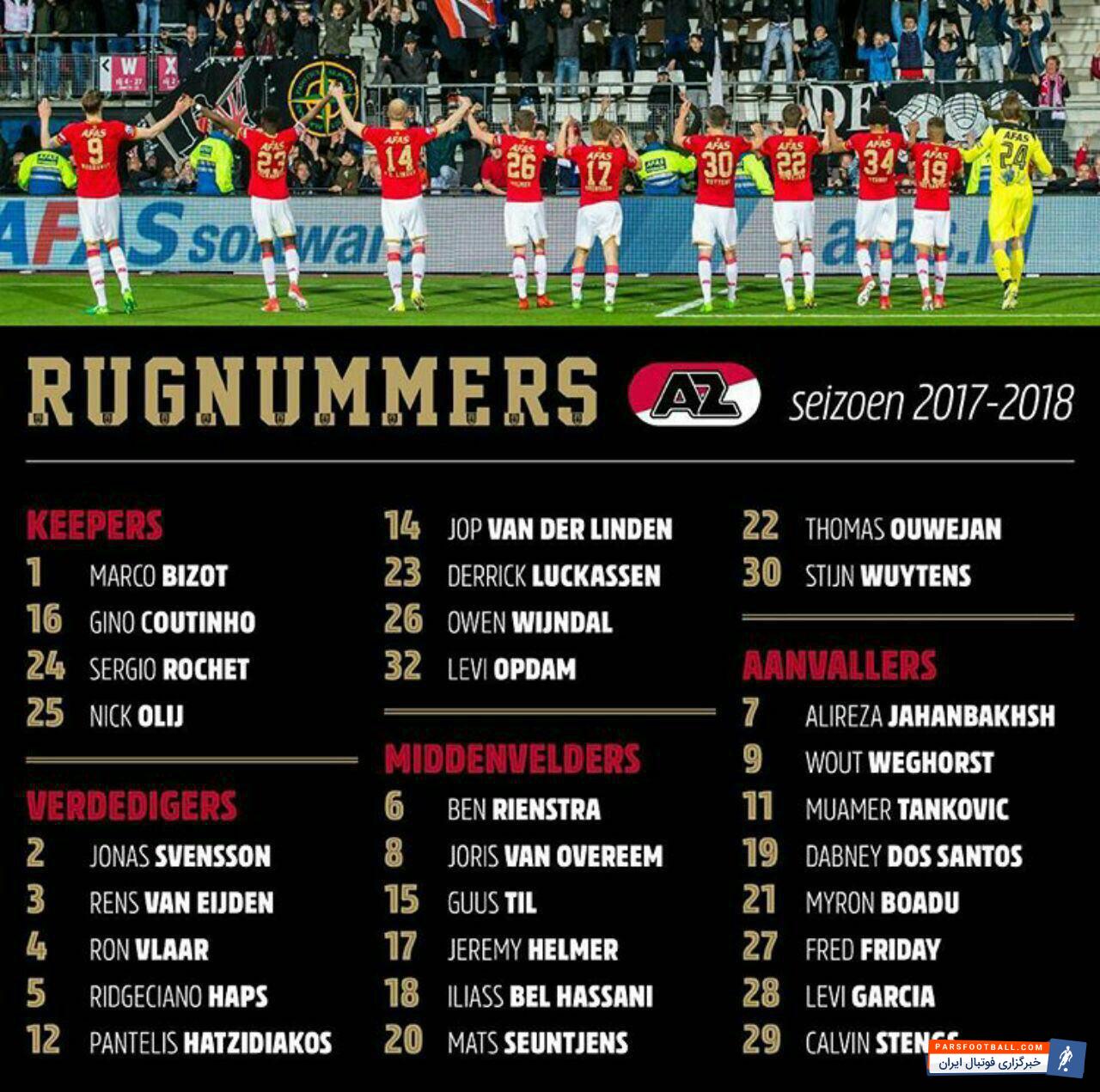تیم آلکمار شماره بازیکنانش برای فصل جدید را منتشر کرد، بر این اساس علیرضا جهانبخش که در این فصل برای تیمش شماره ۷ را می پوشید، در فصل ۲۰۱۷-۲۰۱۸ بازهم با همین شماره برای تیمش در لیگ هلند بازی خواهد کرد.