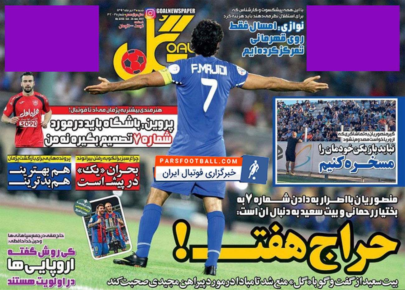 روزنامه گل ، شنبه ۳ تیر ؛ حراج شماره ۷ استقلال !
