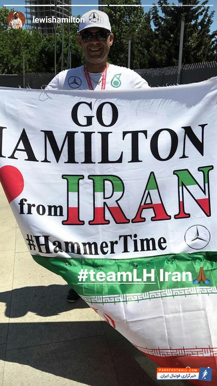 لوییس همیلتون راننده مطرح فرمول یک پس از دیدار با یکی از هواداران ایرانی خود، عکسی با پرچم او گرفته و در استوری اینستاگرام خود قرار داده است که در ادامه این عکس را می بینید: