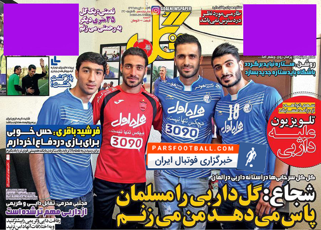 عناوین روزنامه گل در روز شنبه ۱۰ تیر به شرح زیر است :