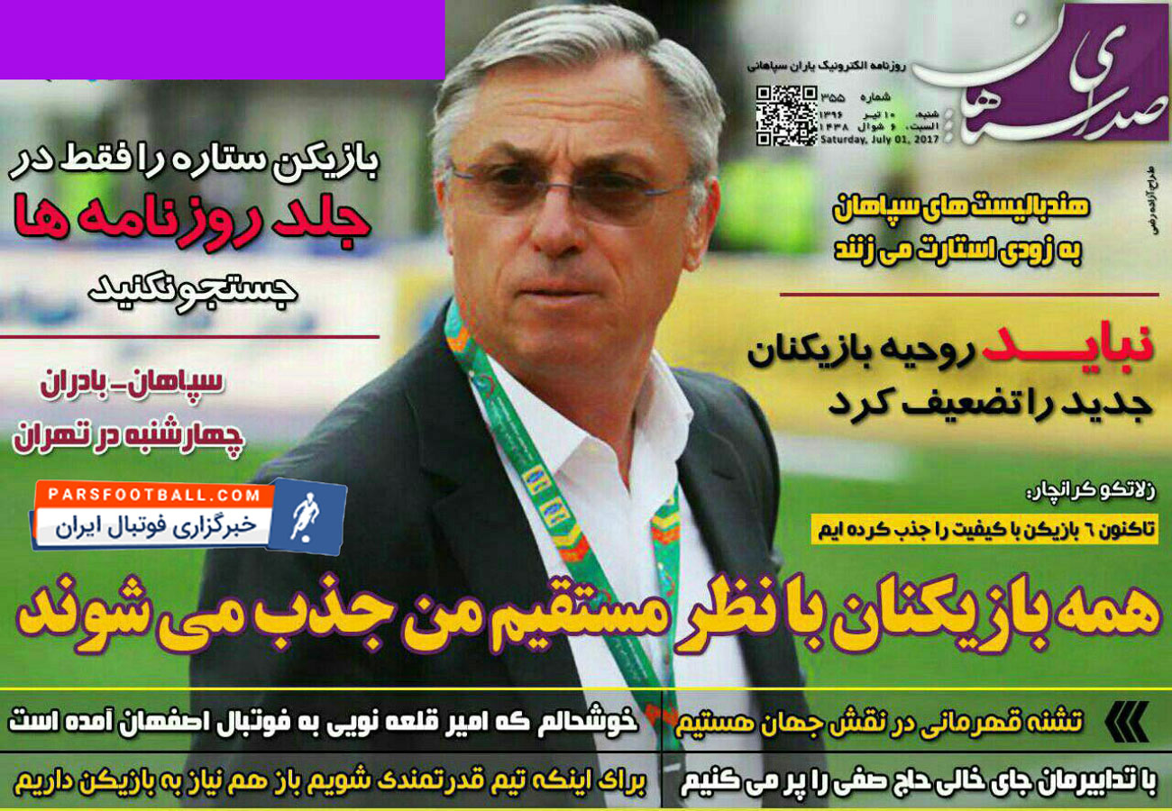 روزنامه صدای سپاهان ، شنبه ۱۰ تیر ؛ ۶ بازیکن با کیفیت را جذب کرده ایم