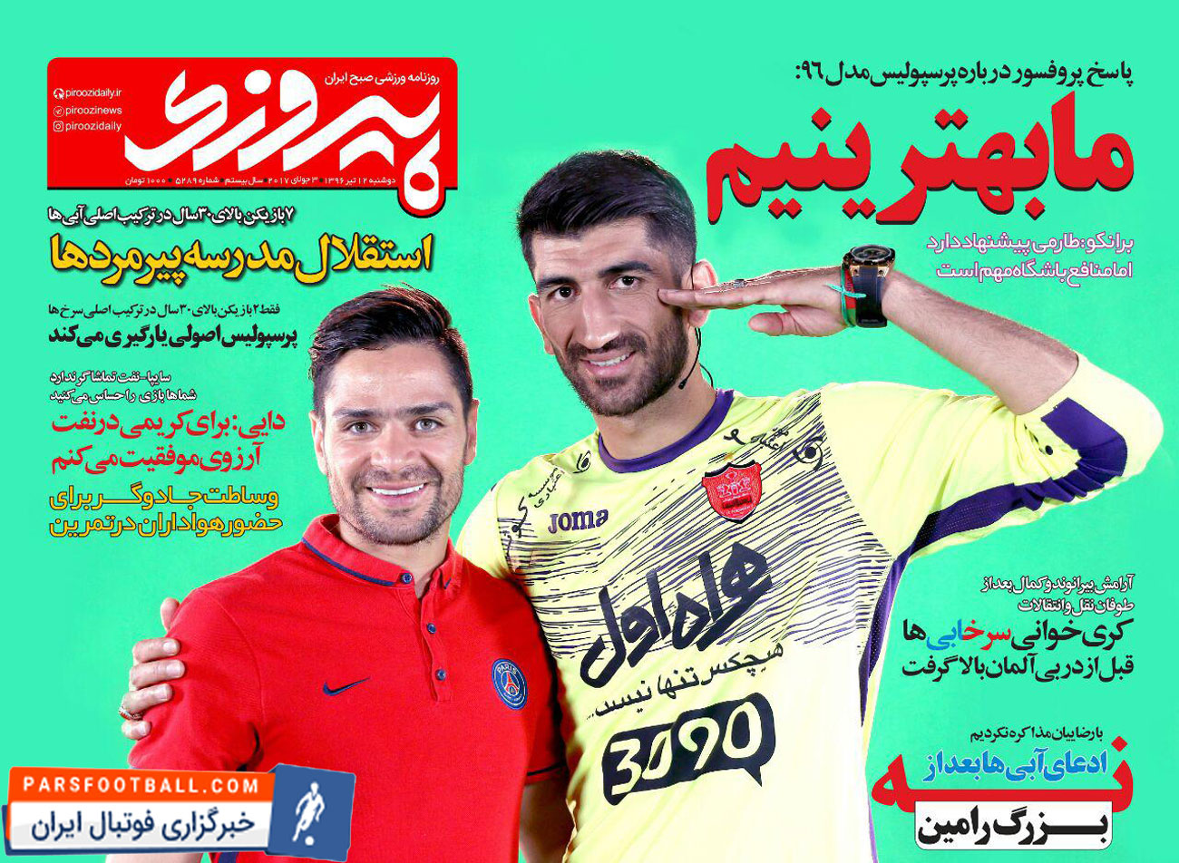 روزنامه پیروزی ، دوشنبه ۱۲ تیر ؛ استقلال مدرسه پیرمردها !