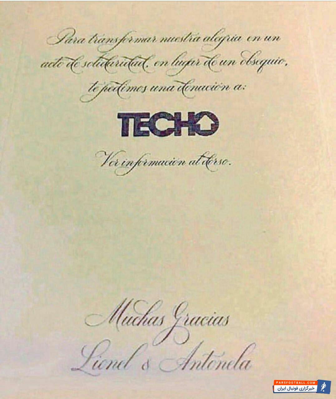 مسی و همسرش به مناسبت جشن ازدواج شان از میهمانان خود خواسته بودند که از دادن هدیه به آن ها خودداری کنند و در عوض هر چقدر که می خواهند به خیریه techo کمک کنند.
