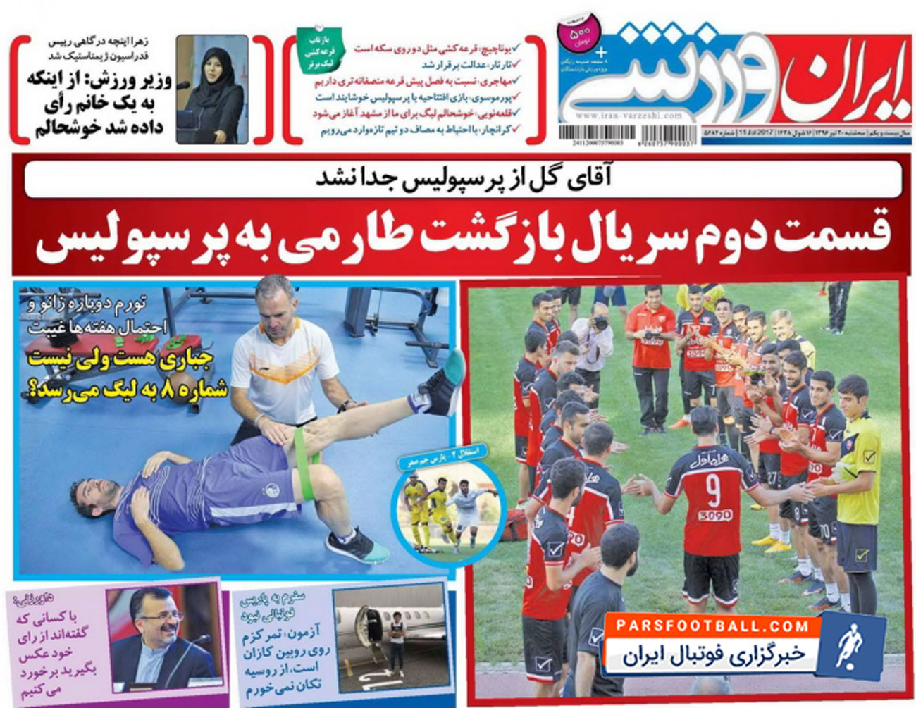 عناوین روزنامه ایران ورزشی در روز سهشنبه ۲۰ تیر به شرح زیر است :