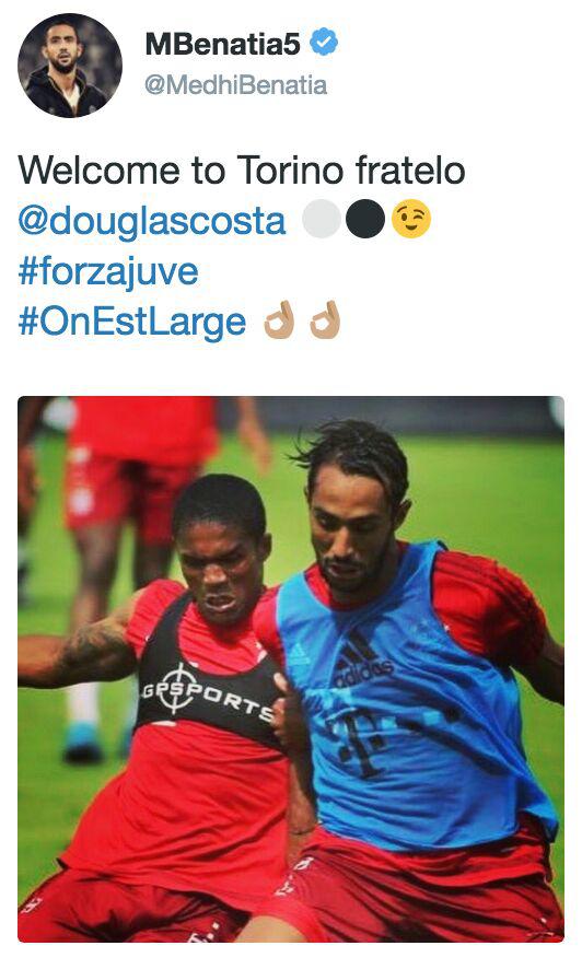 مهدی بن عطیه، مدافع یوونتوس، با انتشار پستی در توئیتر، به داگلاس کاستا برای پیوستنش به این باشگاه خوشامد گفت.