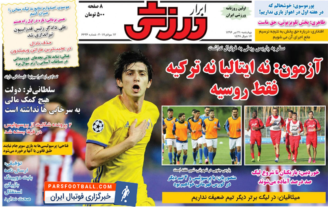 روزنامه ابرار ورزشی ، چهارشنبه ۲۱ تیر ؛ ۲ پرونده شکایت از پرسپولیس در فیفا بسته شد