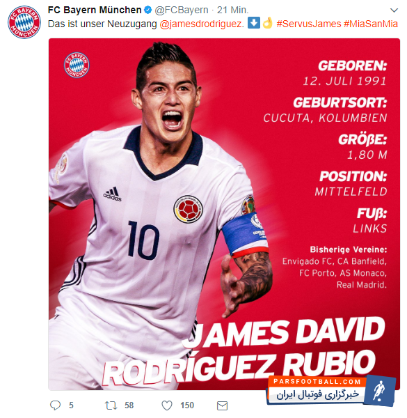 باشگاه بایرن مونیخ هنگام اعلام خبر خرید خامس رودریگز اشتباه عجیبی داشته است.