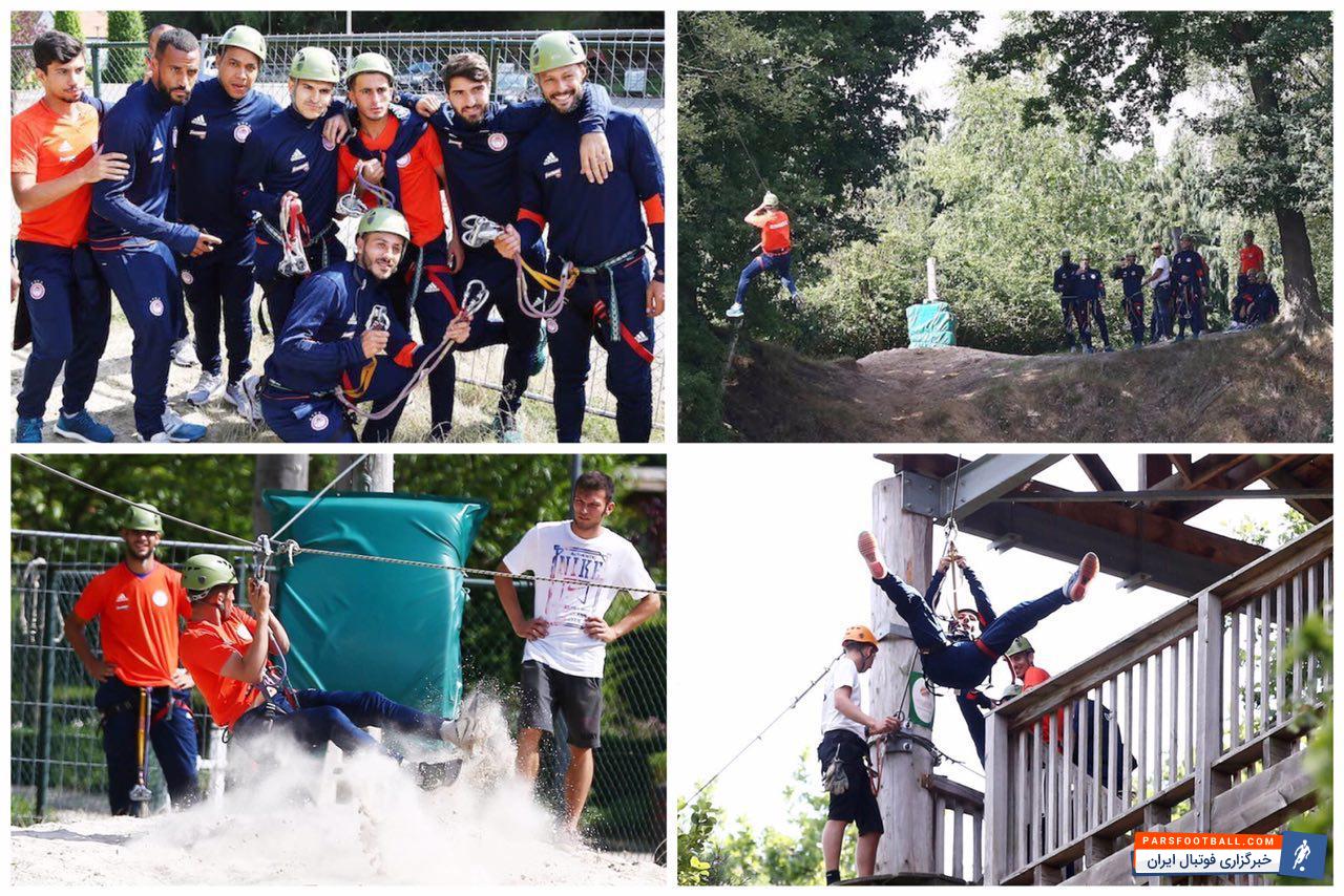 سرمربی تیم المپیاکوس بااستراحت دادن به شاگردانش در اردوی بلژیک آنها رابرای انجام ورزشهای سخت روانه پارک ماجراجوییهای ورزشی کرد! تصویری از انصاری فرد را در کنار دیرگر اعضای این تیم مشاهده می کنید