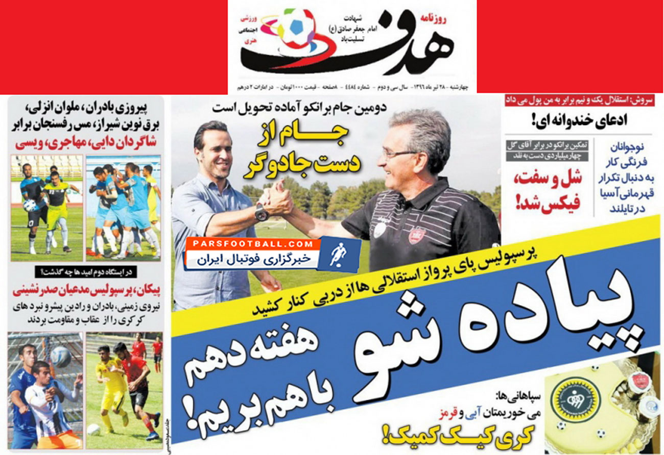 عناوین روزنامه هدف در روز چهارشنبه ۲۸ تیر به شرح زیر است :