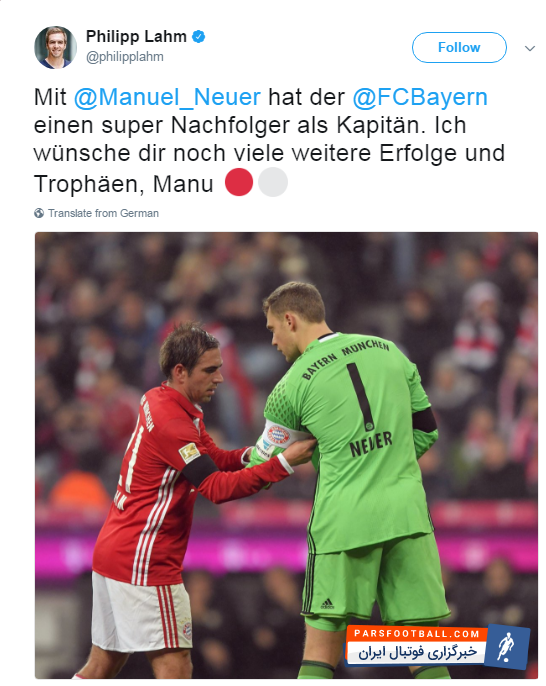 با مانوئل نویر، بایرن مونیخ صاحب یک کاپیتان فوق العاده شد. برایت آرزویی پر از جام و موفقیت دارم، مانو.