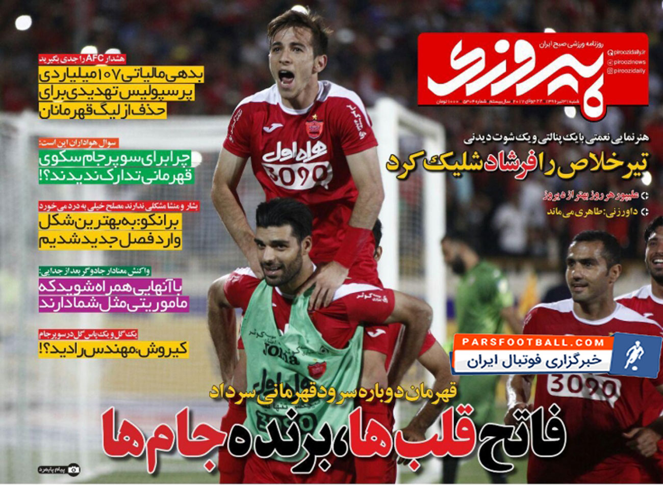 روزنامه پیروزی ، شنبه ۳۱ تیر ؛ فاتح قلب ها ، برنده جام ها !