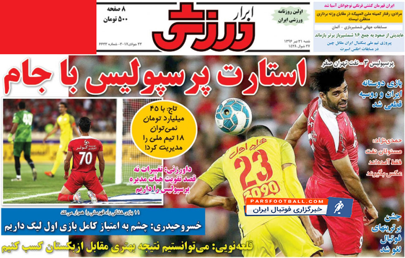 روزنامه ابرار ورزشی ، شنبه ۳۱ تیر ؛ استارت پرسپولیس با جام !
