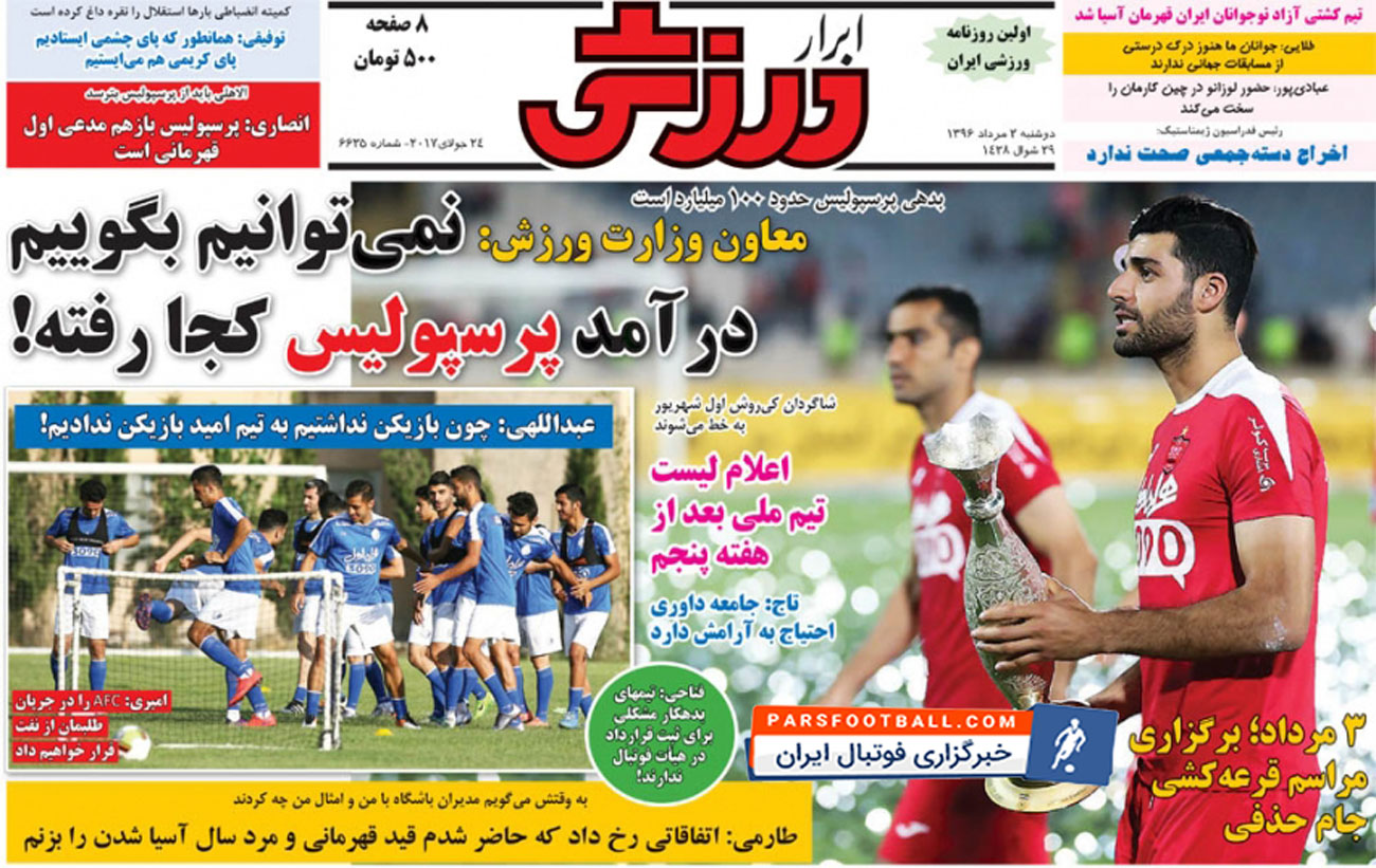روزنامه ابرار ورزشی ، دوشنبه ۲ مرداد ؛ بدهی پرسپولیس ۱۰۰ میلیارد است !