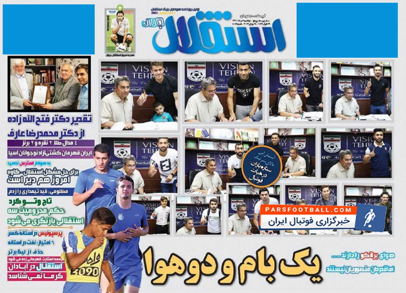 روزنامه استقلال جوان ، دوشنبه ۲ مرداد ؛ پرسپولیس در آستانه کسر ۶ امتیاز !